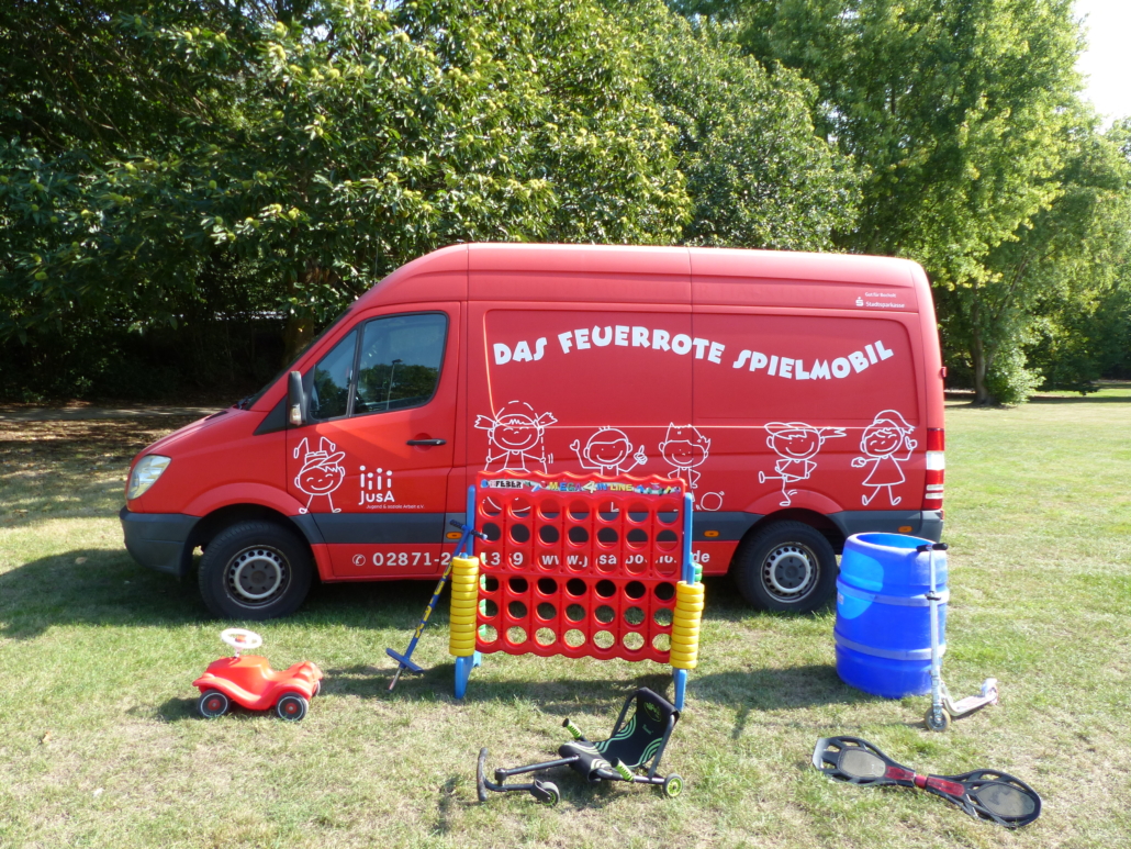 Ihr findet unser feuerrotes Spielmobil an verschiedenen Standorten in Bocholt. Zu bestimmten Zeiten könnt Ihr Euch unsere Spielgeräte vor Ort kostenlos ausleihen und nach Herzenslust damit spielen. Kommt vorbei!